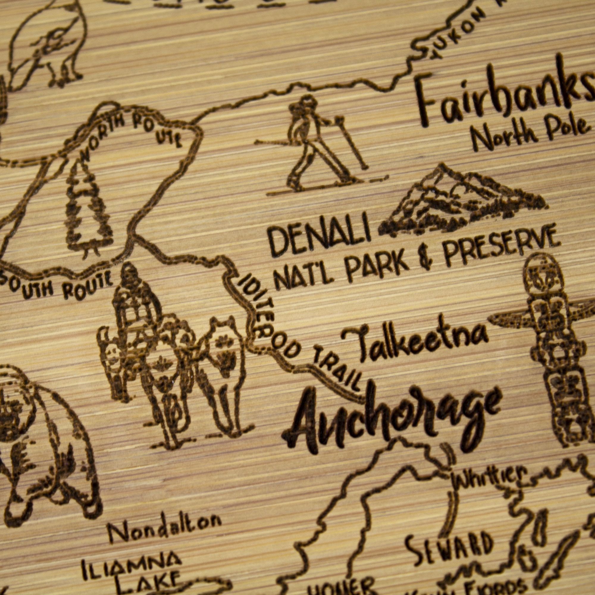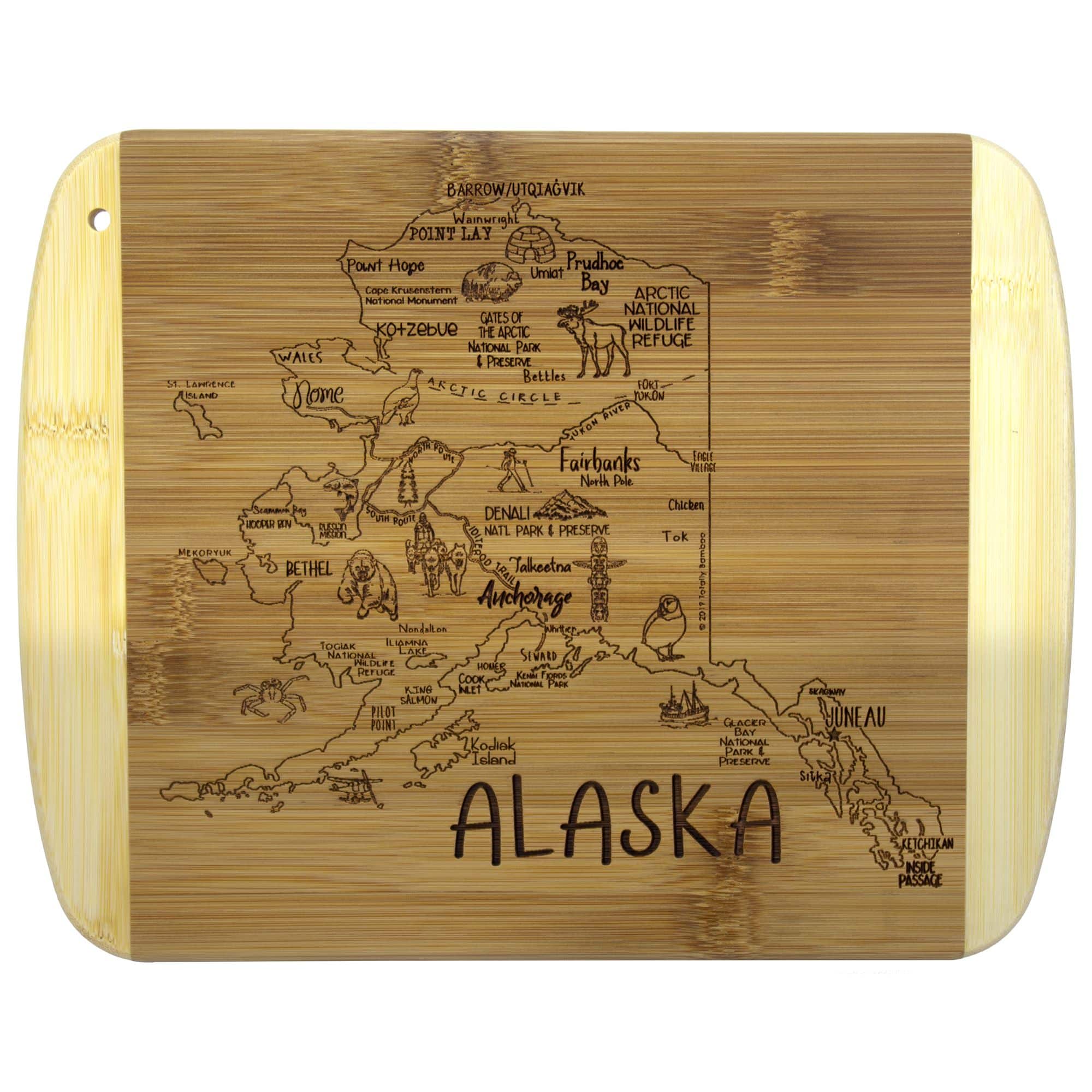 Savor a slice of this State with this beautiful bamboo serving and cutting board with artwork inspired by its cities, places and people. Fun, whimsical artwork features many of the wonderful sights and places. Beautiful flat grain bamboo, laser etched side serves as an ideal serving platter and the reverse smooth side is a great cutting surface; It’s friendly on knives and hand wash only. Bamboo is better for the environment; Moso® bamboo is incredibly durable. Complies with Prop 65. 11″ W x 8 3/4″ H x 1/2″ Thick