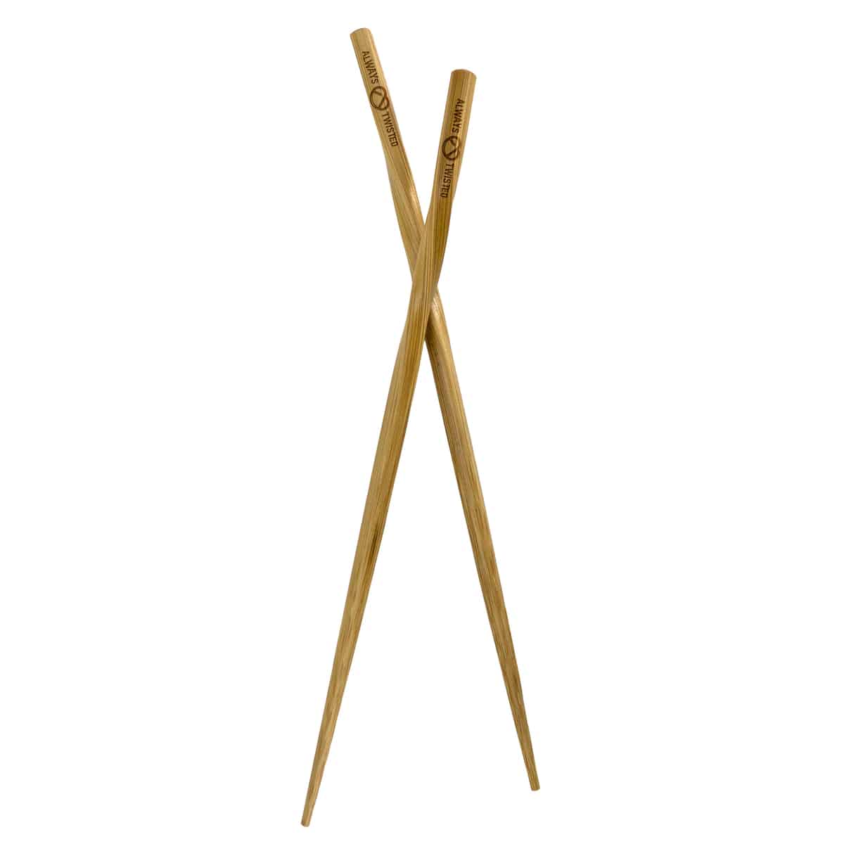 Take your dining experience to the next level with these beautiful reusable chopsticks that are far superior to rough, disposable options. Each chopstick is masterfully hand-made by steaming then twisting the bamboo stalk for a gorgeous look that also provides a bit better grip than the standard smooth chopstick. The Twist Chopsticks each have plenty of reach when eating family style. Chopsticks clean easily by hand washing in warm water and allowing to air dry. 9 3/4″ L